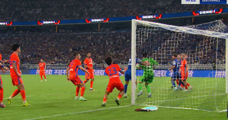 第18分钟,神仙球!汪海健角球直接破门!申花1-0泰山!