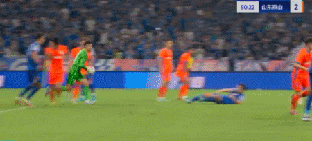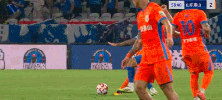 第45+4分钟,7场13球!卡扎轻巧停球后推射破门!山东再度扳平!