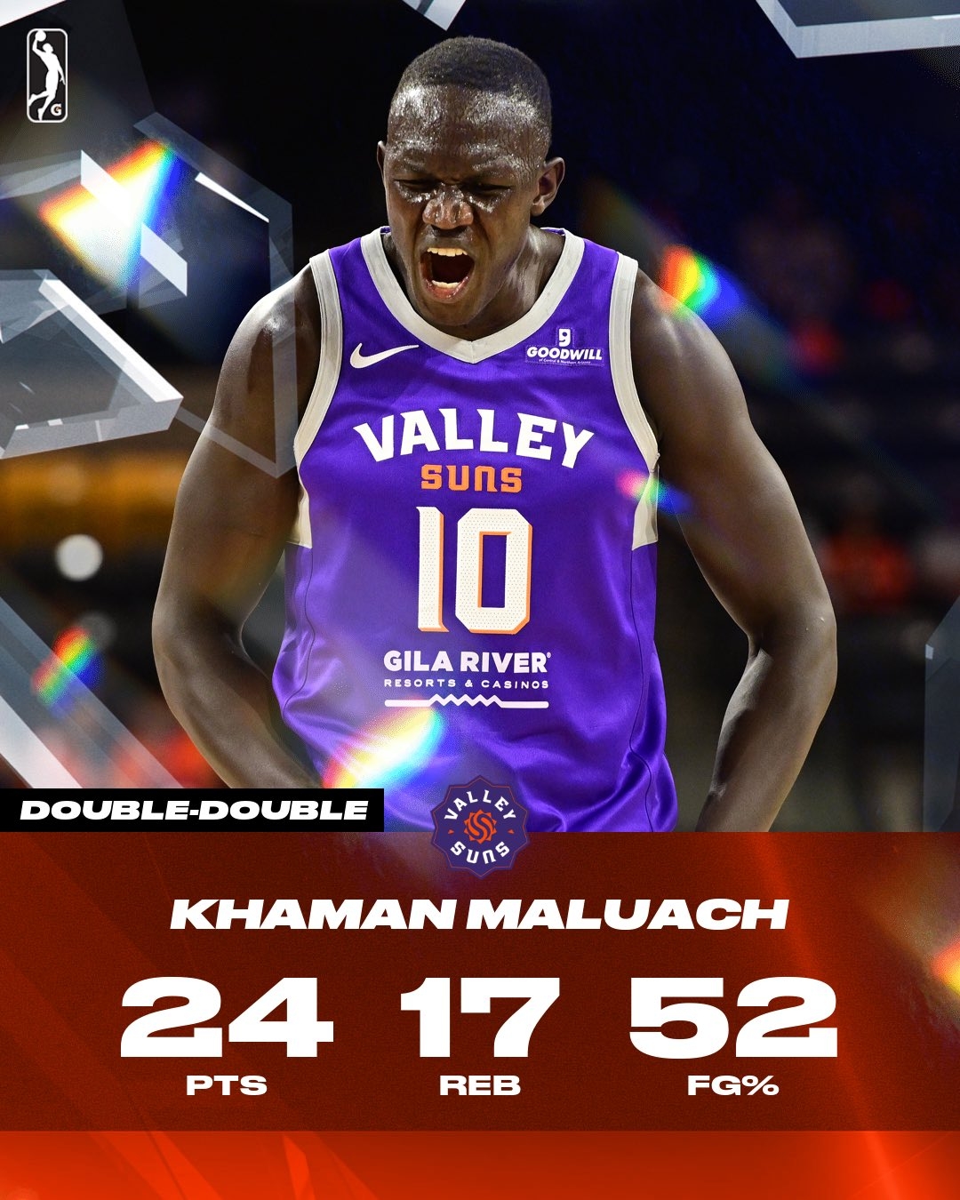 开云线上入口-好兄弟~太阳10号秀马卢阿奇G联盟轰24分17板 2米16秀砸板接球暴扣